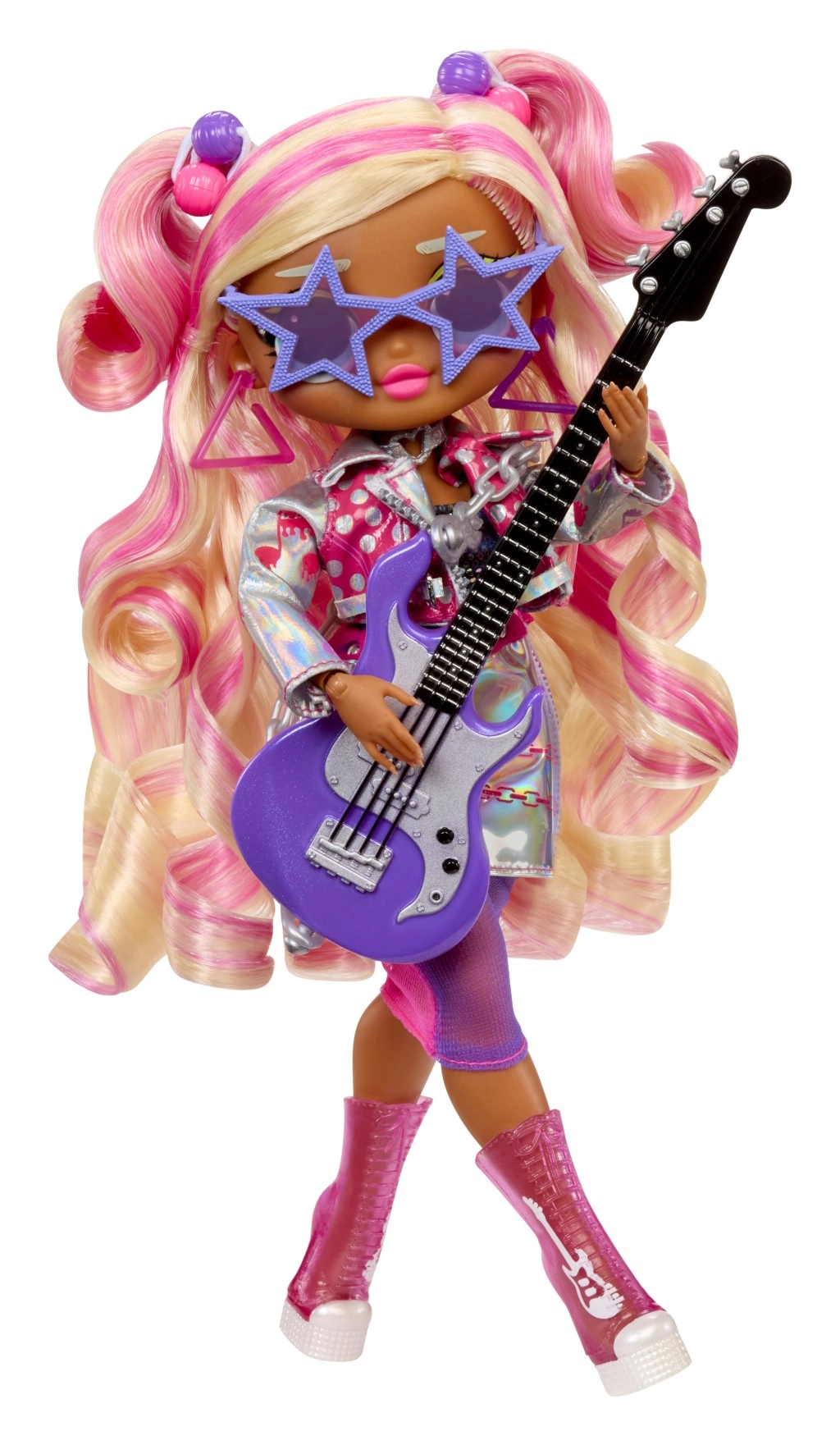 Куклата има детайлно изработен тоалет, ставни крайници за позиране и богати аксесоари, включително електрическа китара, бижута и четка. Две визии в една и повече от 15 изненади осигуряват часове творческа игра, колекциониране и изложение.