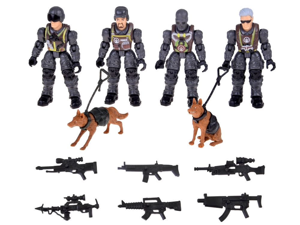 Фигурките са изработени от здрав пластмасов материал с внимателно изпипани детайли, включително тактически жилетки и оборудване. Благодарение на компактните размери се държат лесно в детска ръка и се комбинират добре с други модели превозни средства или конструктори.