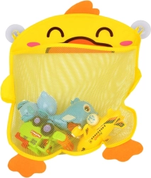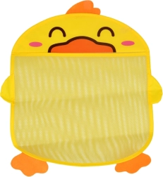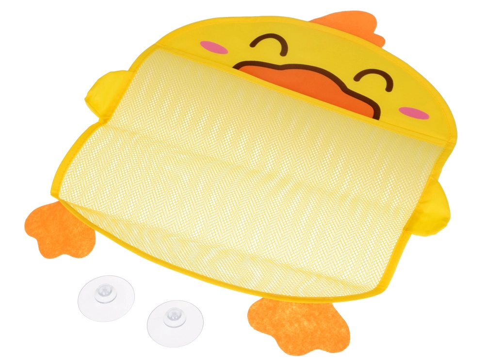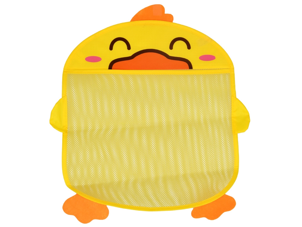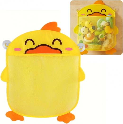 Очарователен бански органайзер във форма на жълто патенце помага да поддържате ред във ваната и душа. Просторната предна мрежа побира играчки за къпане и дребни принадлежности, съхне бързо и предотвратява образуването на мухъл. Благодарение на 2-те вендузи лесно се закрепва върху гладки плочки или стъкло. Страхотно допълнение за банята и детската стая.