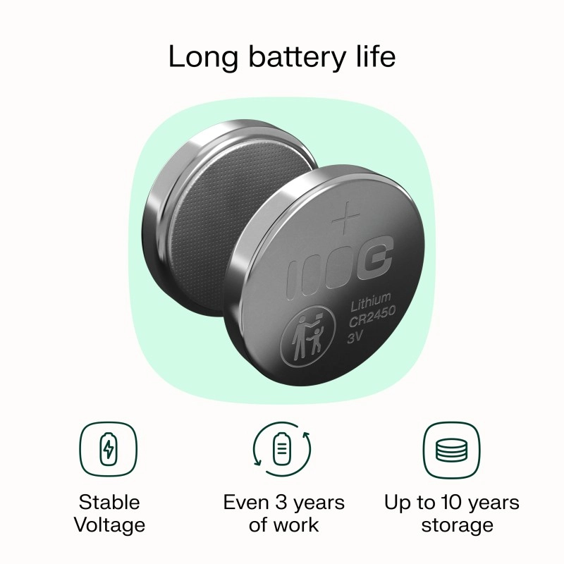 Надеждните литиеви батерии CR2450 GREENCELL са проектирани като стабилен и дълготраен източник на енергия за ежедневна употреба. Благодарение на реалния капацитет 600 mAh осигуряват по-висока производителност от обикновените алкални алтернативи и са готови за употреба веднага след изваждане от блистера. При правилно съхранение запазват до 90% от капацитета дори след 10 години.