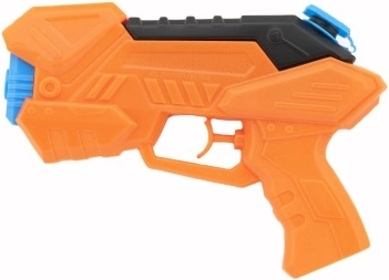 Забавен пластмасов воден пистолет с дължина 19 см за лятно освежаване и игри край водата. Лесното пълнене с вода и удобното пръскане осигуряват бързо действие, лек захват и много забавление за деца от 3 години.