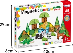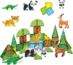 С този магнитен строителен комплект децата ще построят водопади, пещери, арки, дървета и храсти и ще ги оживят с фигурки на животни. Частите се свързват лесно и безопасно благодарение на магнитното съединение, така че строенето е забавно и интуитивно.