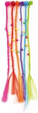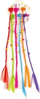 Оживете прическата на вашата малка кокетка с комплект фиби и щипки с цветни плитки. Пришивките с дължина около 30 см се закрепват лесно и за миг създават игрив, цветен ефект. Идеални за ежедневно носене и като допълнение към карнавален костюм. В комплекта ще намерите 6 бр. с украси във форма на цветчета.