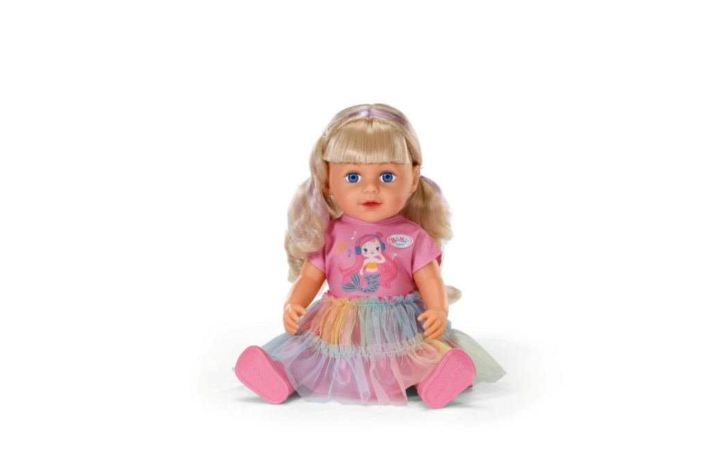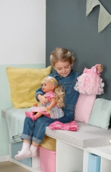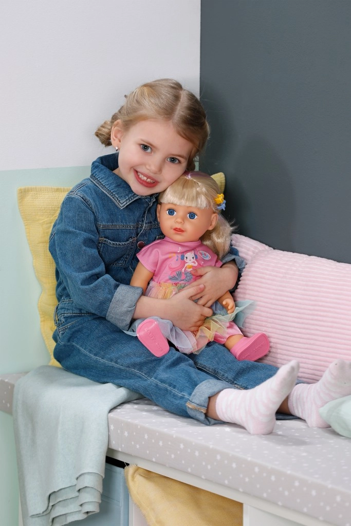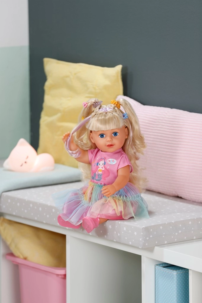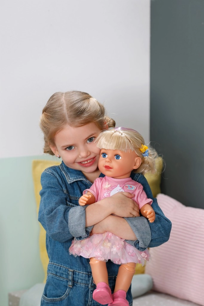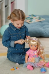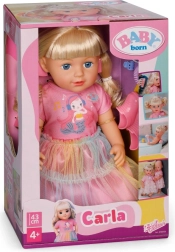 Куклата BABY born Карла е идеалната приятелка за креативна игра и експерименти с прически. Дългата найлонова коса се разресва и оформя лесно, а с включените четка, ластици и шнолки ще създадете безброй прически. Реалистичният външен вид, подвижните крайници и възможността да стои самостоятелно стимулират фантазията и ролевата игра.
