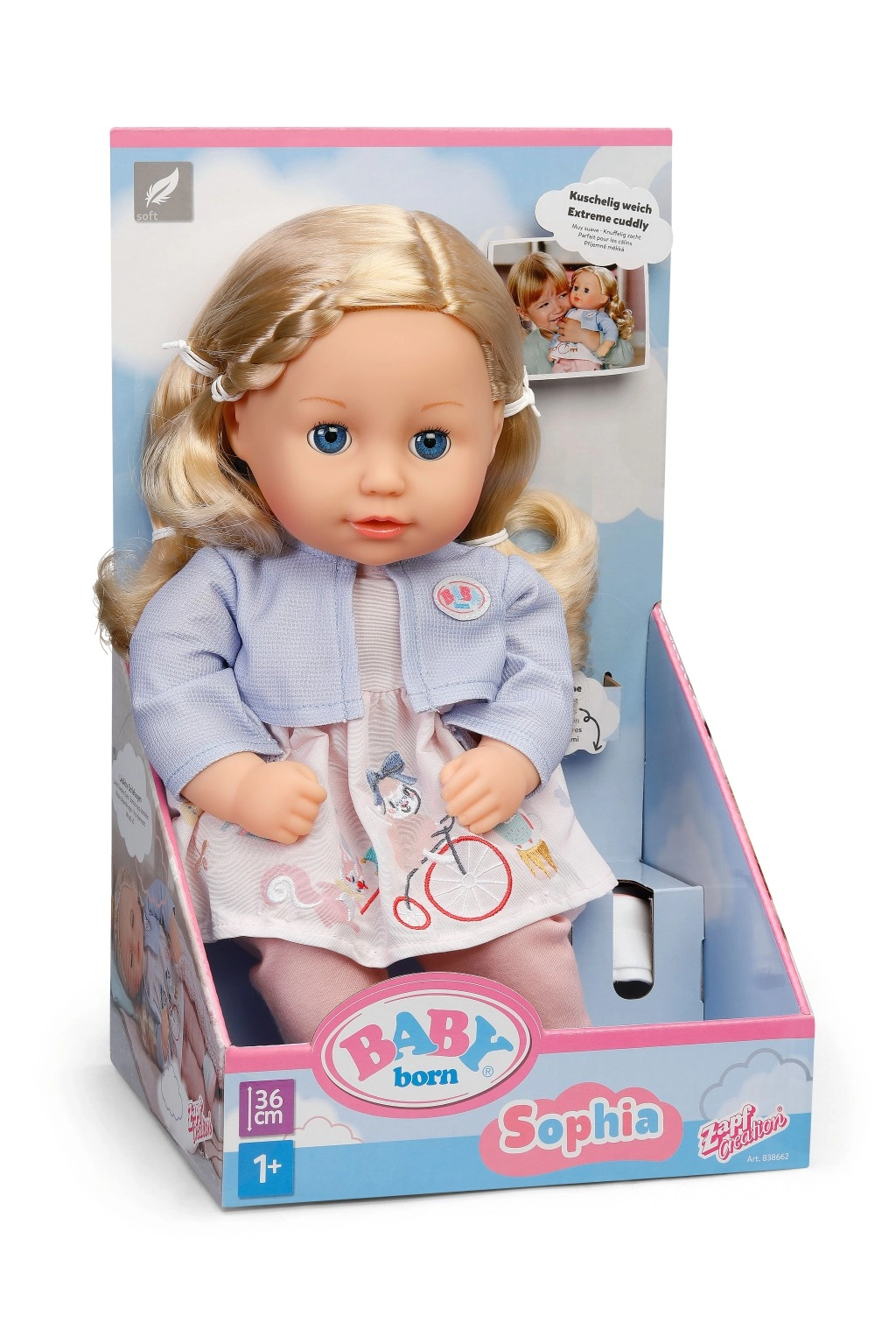 Запознайте се със София – нежна спътница за всекидневни игри. Куклата BABY born Sophia в розов аутфит очарова с мекото си телце, идеално за гушкане, реалистичните мигащи очи и богатата, качествена коса, която направо кани към сресване и създаване на прически.