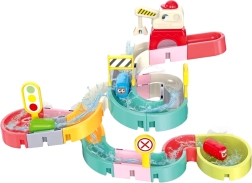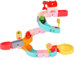 Забавна водна писта за баня, която превръща всяко къпане в приключение. Благодарение на силните вендузи я закрепяте лесно върху плочки или стена на душа, модулните елементи позволяват изграждане на оригинални трасета, а магнитният кран връща капсулните колички обратно на старта. В комплекта има сито за воден душ, пътни знаци и сладки колички за развитие на моториката и въображението.