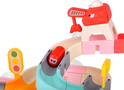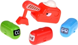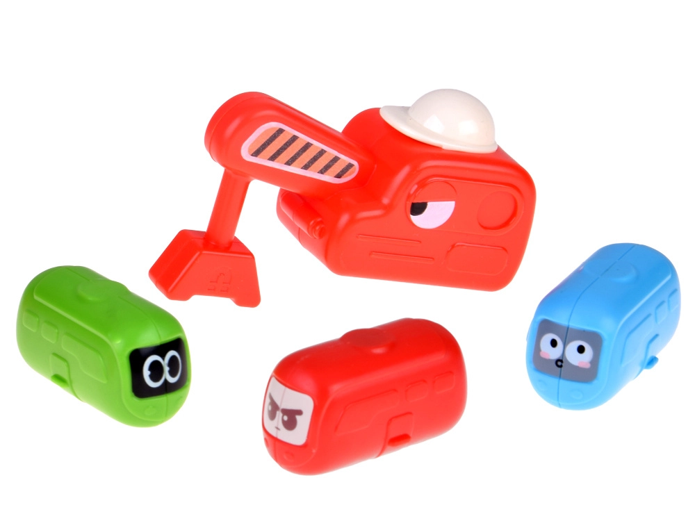Включени са магнитен кран с кука, придружаващи пътни знаци и „бобчести“ колички с мили физиономии. По време на строене и игра децата тренират фина моторика, координация око-ръка, пространствено въображение и разбиране на причинно-следствени връзки.