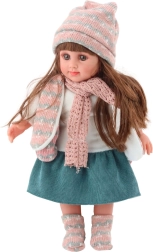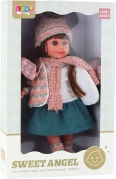 Очарователната кукла SWEET ANGEL с височина 36 cm ще зарадва всяко дете, което обича да играе на семейство и грижи. Тя има дълга кестенява коса, нежни черти на лицето и реалистични очи. Облечена е в зимен комплект – шапка, шал и жилетка, допълнени с пола, блузка и чорапи. Страхотна за развитие на въображението и ролеви игри.