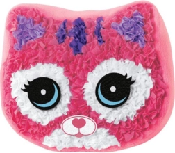 - възглавница във форма на котка, цветни парчета материали, очи и носле за залепване, пластмасов стан, оригинална опаковка