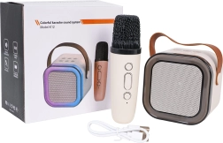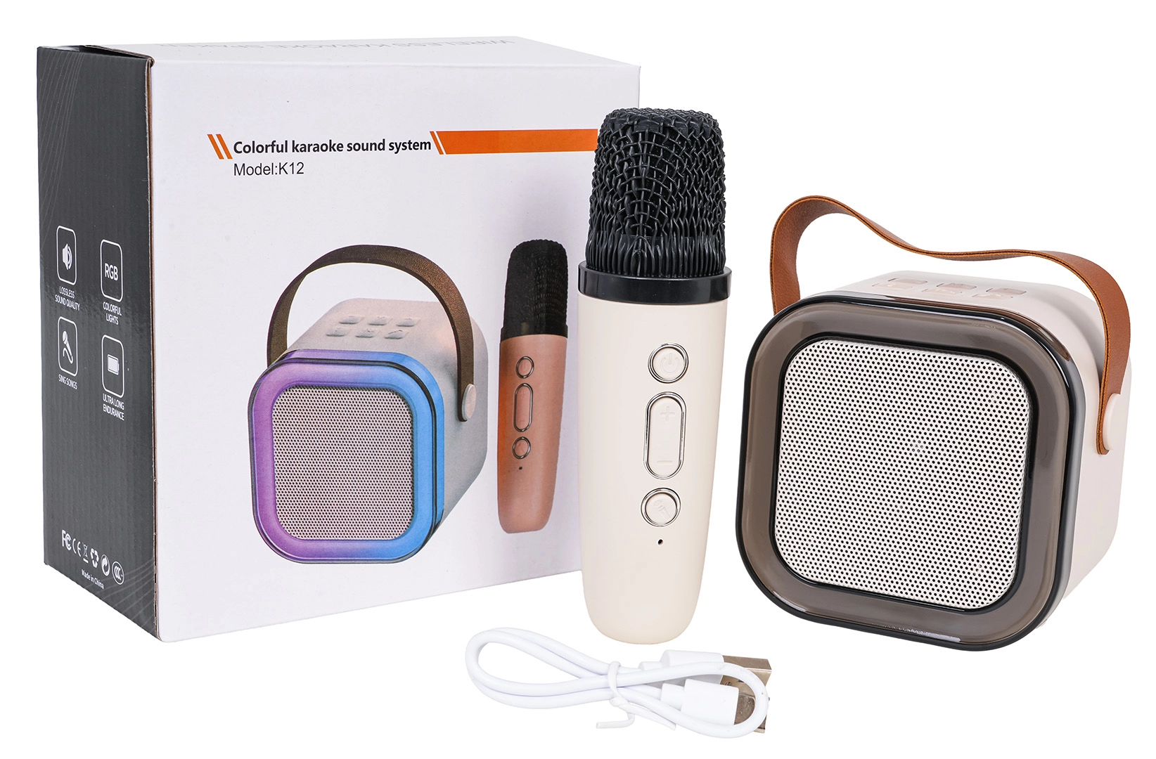 Компактен караоке комплект за деца от 3 години и възрастни, който съчетава безжичен микрофон и мощен мини високоговорител с чист и силен звук, RGB осветление и стабилен Bluetooth 5.0. Благодарение на DSP шумопотискане, поддръжка на MP3/WMA/WAV и входове включително TF карта и USB‑C, е идеален за пеене, обяви и забавление в движение.