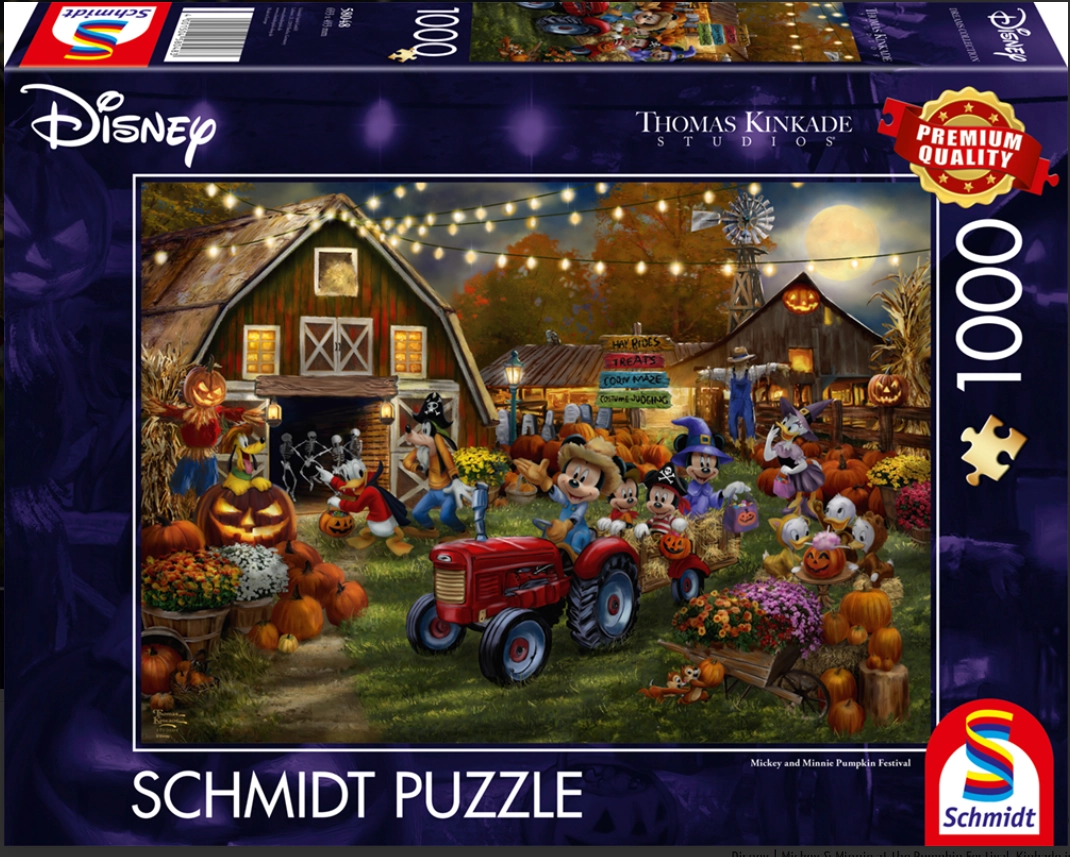 Открийте радостта от подреждането с премиум пъзела SCHMIDT с есенен мотив Mickey и Minnie: Тиквен празник. Благодарение на прецизното изрязване и здравите части всяко парче пасва идеално на мястото си, а крайният образ ще зарадва деца и възрастни. Идеален за моменти на отдих, развитие на търпение и концентрация.