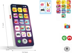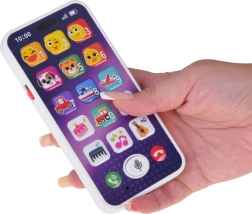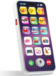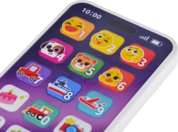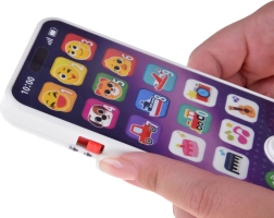 Пъстър интерактивен телефон за най-малките наподобява истински смартфон и предлага много забавление и обучение. Благодарение на големите икони детето учи числата, животински и транспортни звуци и слуша мелодии. Играчката е с лека и плоска изработка, удобна за хващане от малки ръчички и има регулиране на силата на звука за комфортна игра у дома и по време на път.