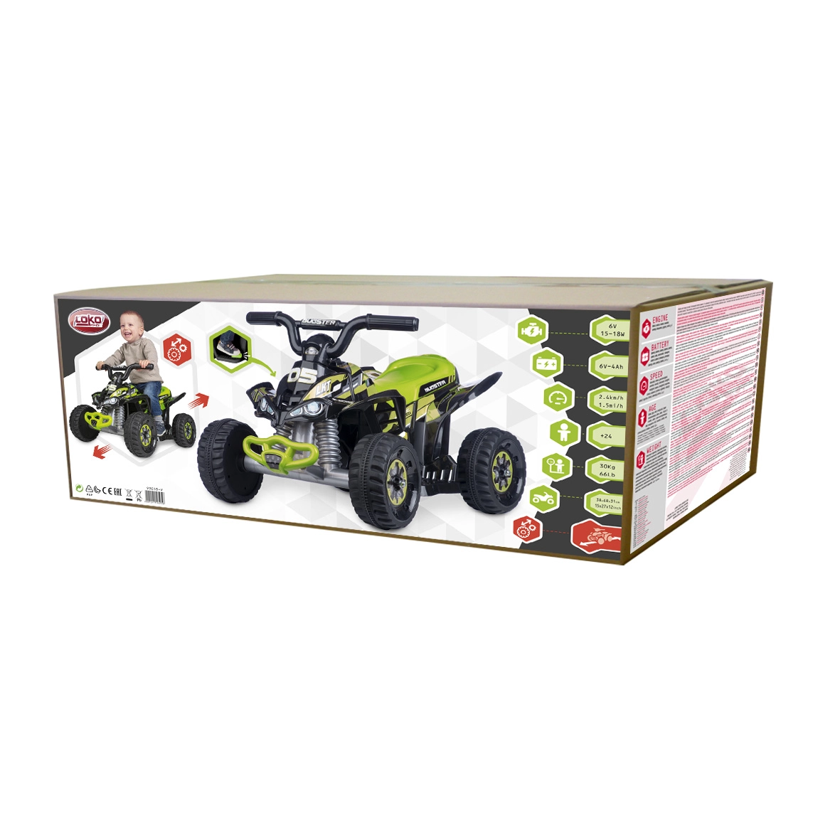 Това компактно електрическо ATV е отличен избор за първи карания. С размери 46 × 72 × 46 cm се управлява лесно и е проектирано да осигури на децата безопасно и радостно изживяване. Благодарение на здравите колела и удобните стъпенки малките водачи могат да се чувстват уверени на различни настилки.