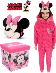 Сладък и удобен детски гащеризон с мотив MINNIE MOUSE, идеален за у дома, за сън и за празненства. Има мек и топъл флийс, практично закопчаване с цип и качулка с 3D ушички и панделка. Благодарение на маншетите на ръкавите и крачолите стои отлично и не ограничава движението.