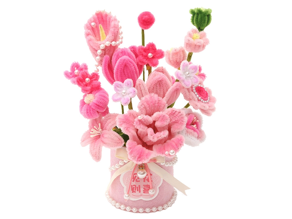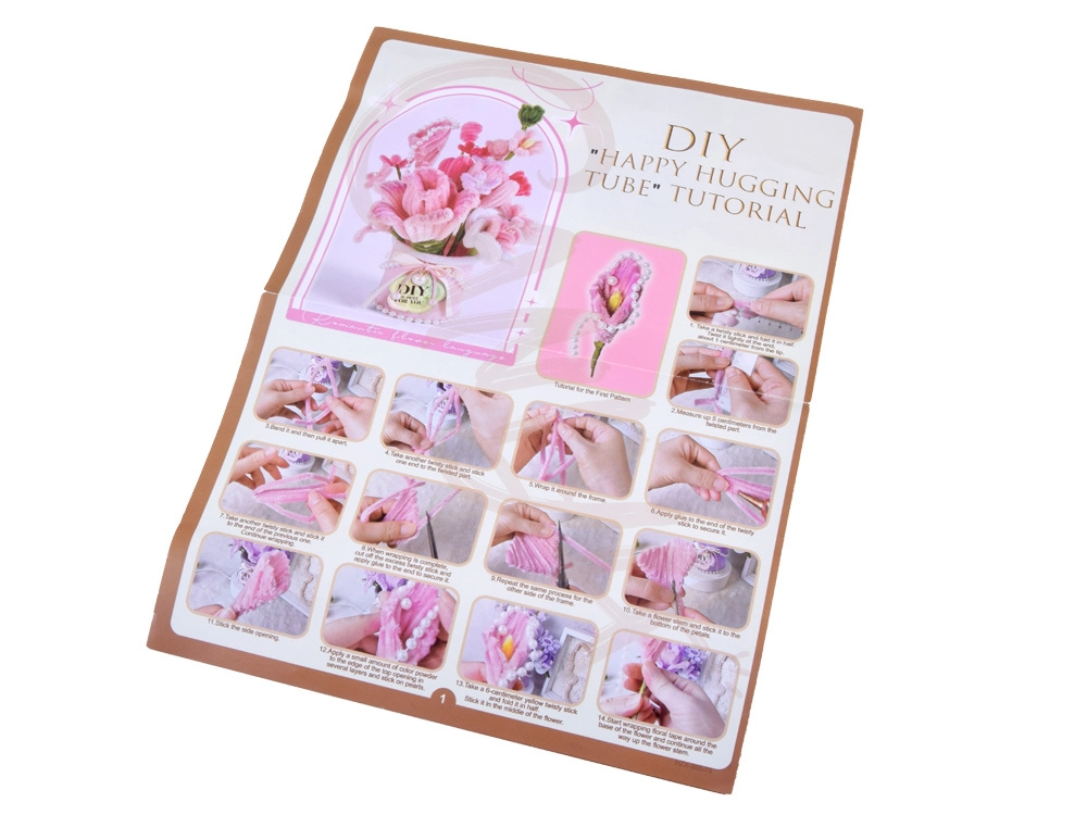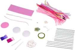Какво ще откриете в комплекта: цветни креативни телчета, декоративни елементи (перли, панделки), цветна пудра, филц, гъбичка, лента, лепилен стик (допълнение – не е задължително за употреба) и илюстрирана инструкция.