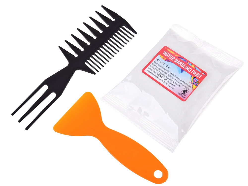 Специалният гребен и инструментите помагат да създавате традиционни и модерни мраморни мотиви за минути.