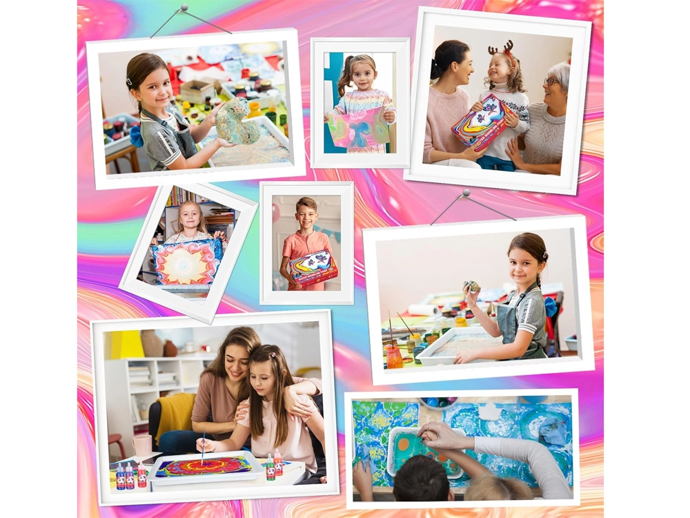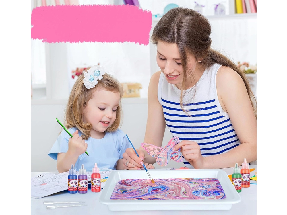 - Ярки, смесваеми бои за ефектно мрамориране.