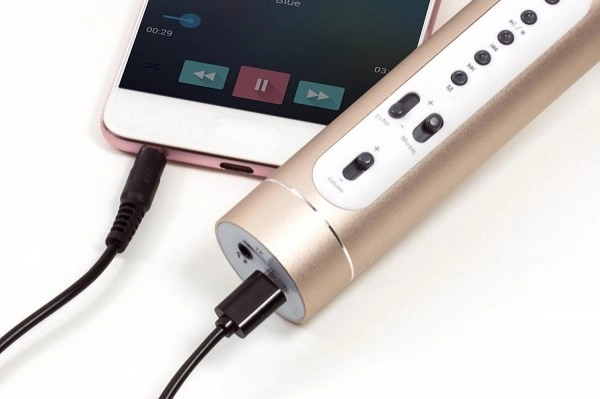 Този преносим караоке микрофон е идеален за домашни забавления, празненства и партита. Благодарение на интерфейса Bluetooth 4.2 лесно сдвоявате телефон, таблет или компютър, а при нужда можете да използвате AUX връзка или възпроизвеждане от TF карта. Вградените високоговорители 2×3 W осигуряват чист и достатъчно силен звук.