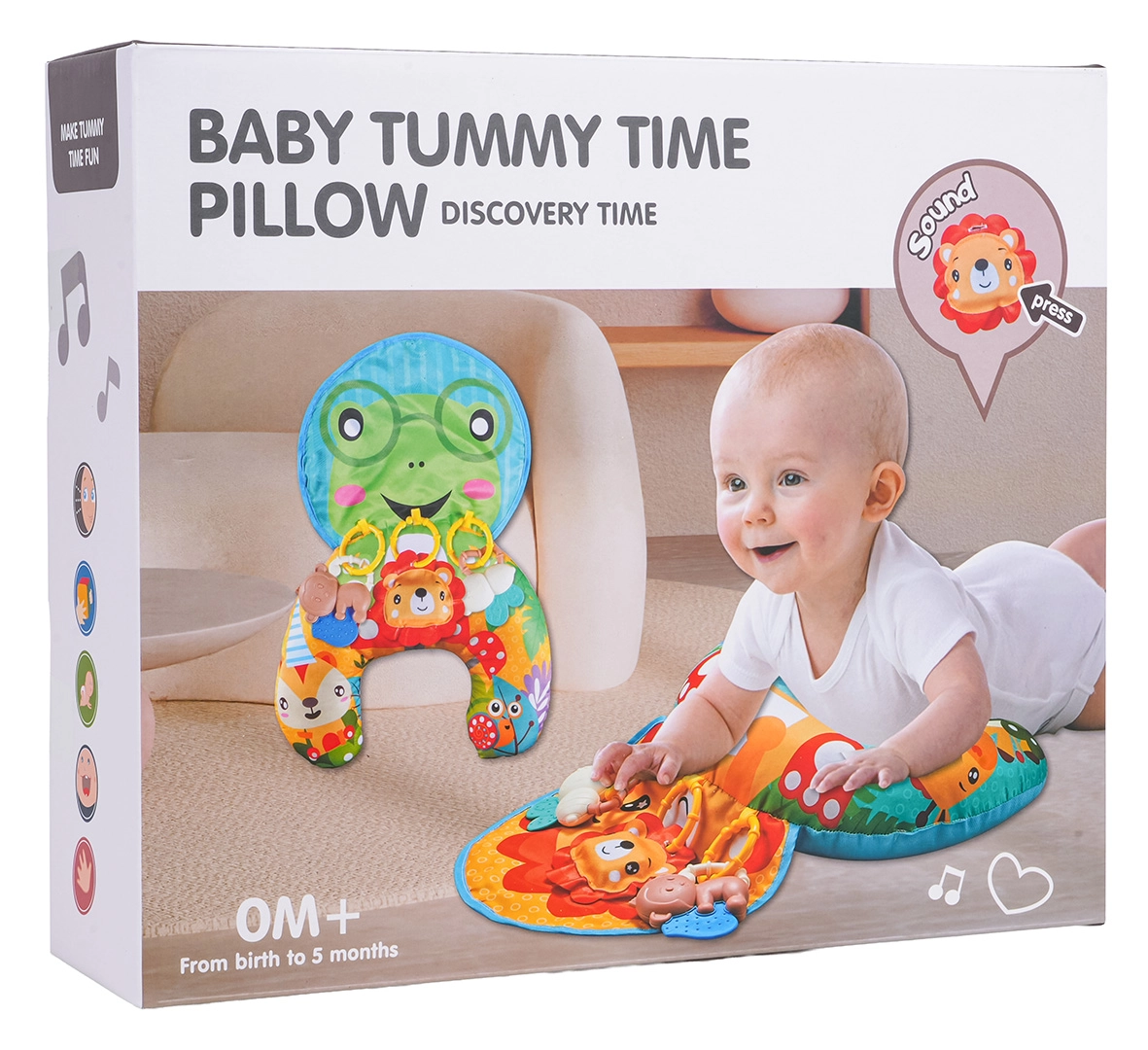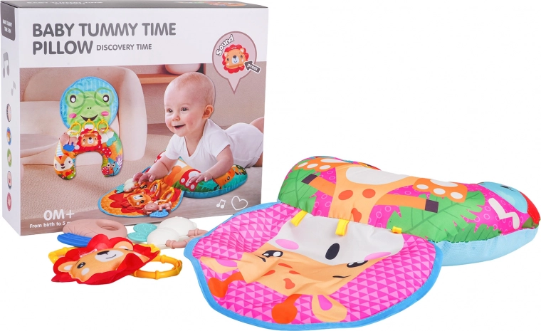Тази многофункционална сетивна възглавница за най-малките е идеална за ежедневна игра и отдих. По време на лежане по корем предоставя стабилна опора, която помага за укрепване на мускулите на врата и гърба. За седящи деца служи като меко подплатяване, а по-късно и като удобна подложка за столче за кола или количка.