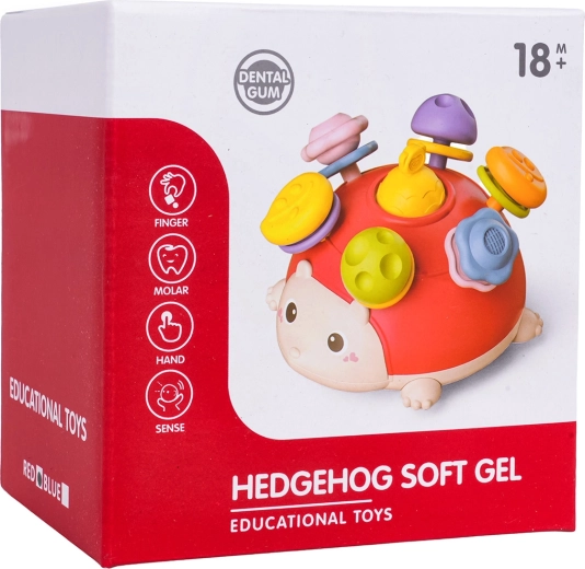 Очарователният сетивен таралеж за деца от 18 месеца развива фината моторика, сетивното възприятие и координационните умения. Има меки издатини, подходящи при никнене на зъбки, цветни рингчета с дрънкалка, бутон за натискане и дърпане, ластичета на ръчичките и крачетата за безопасно дърпане и спинър в долната част за безкрайно въртене. Изработен е от безопасни материали без остри ръбове, в живи цветове, които естествено приканват децата към игра.