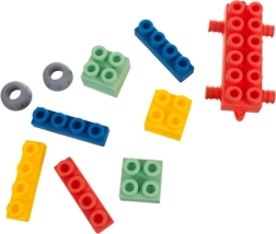 Цветните части с изразени издатини се държат и свързват лесно. Децата упражняват фината моторика, координацията око–ръка и развиват въображението си.