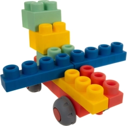 Цветен комплект сензорни строителни блокчета от мек TPR за най-малките, предлагащ безопасно и креативно забавление. Частите са меки и гъвкави, имат заоблени ръбове и се свързват и разделят лесно. Подпомагат фината моторика, координацията око–ръка и сензорното развитие. Голям комплект от 80 броя в практичен преносим калъф е идеален за игра у дома и по време на път и се поддържа лесно чист.