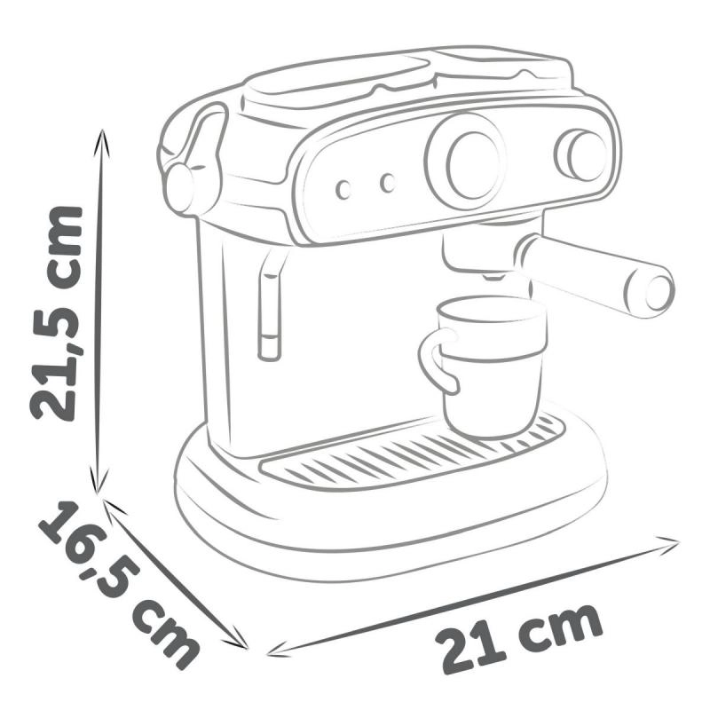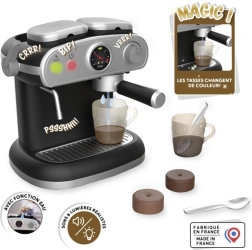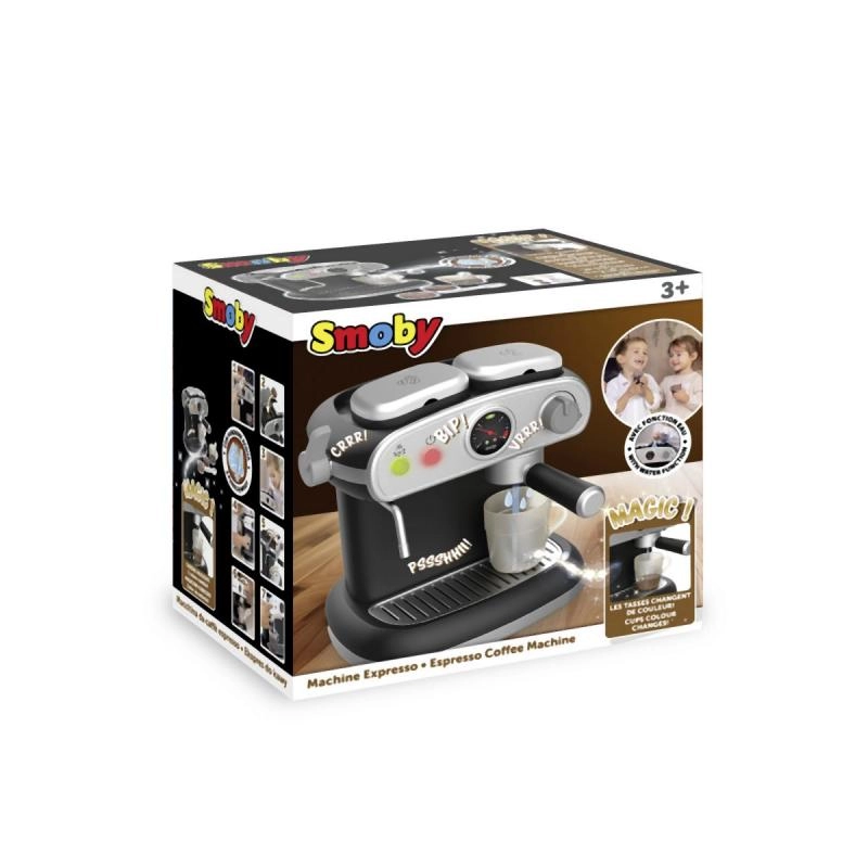 Поканете децата в света на ароматното кафене с компактната детска еспресо кафемашина, която изглежда и се държи като истинска. Реалистичните светлинни и звукови ефекти стимулират въображението и развиват социалните умения по време на игра. Магическите чаши, които сменят цвета при контакт със студена вода, превръщат всяко „шотче“ в забавно шоу.
