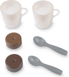 В комплекта има 2 чаши, 2 лъжички и 2 капсули за кафе. Всичко е готово за незабавна игра на кафене.
