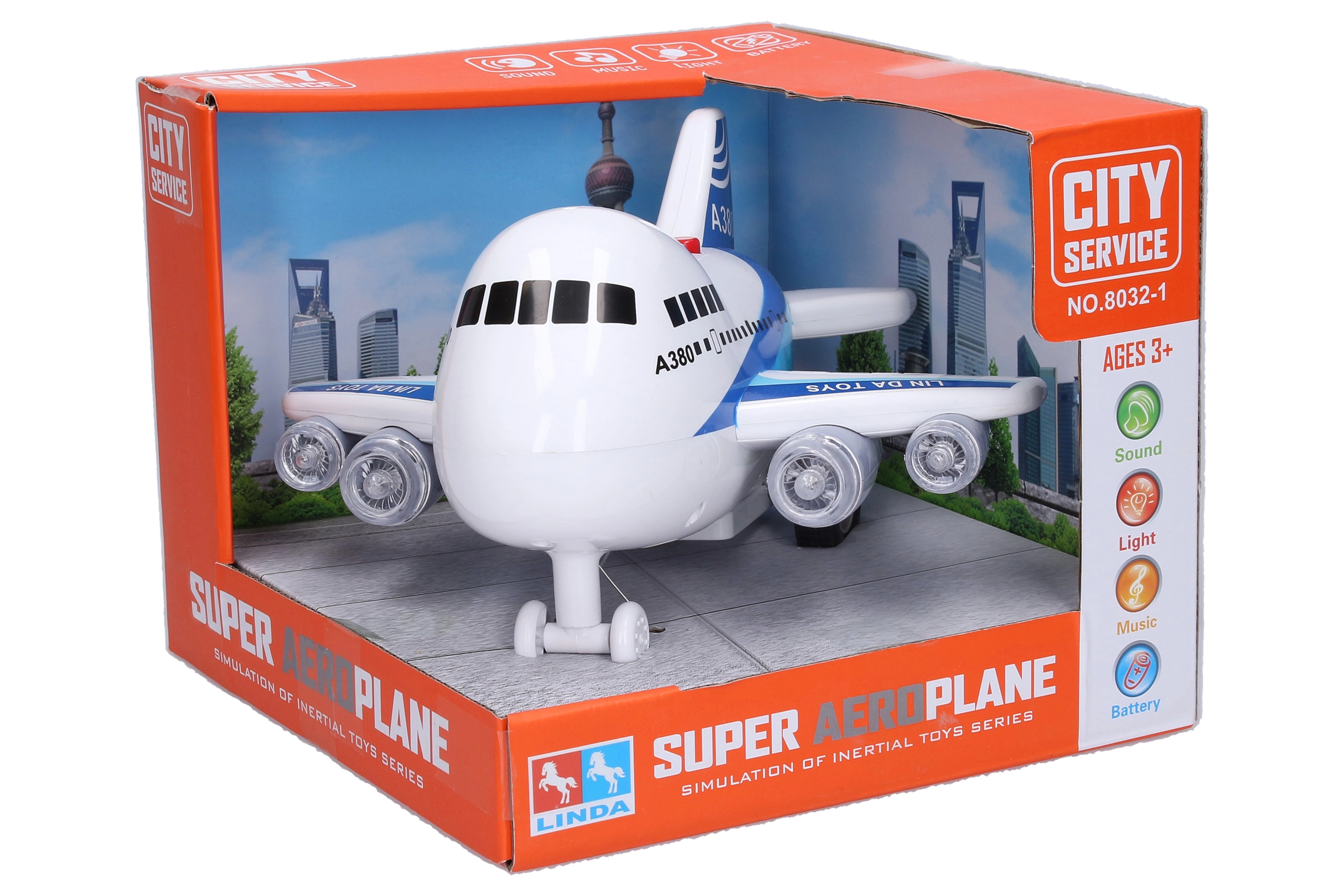 Открийте забавлението с реалистичен самолет с инерционно задвижване, който се движи плавно напред след леко побутване. Вградените светлинни и звукови ефекти придават автентичност на играта, а децата лесно активират функциите чрез бутоните, разположени на покрива на самолета.