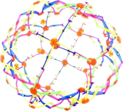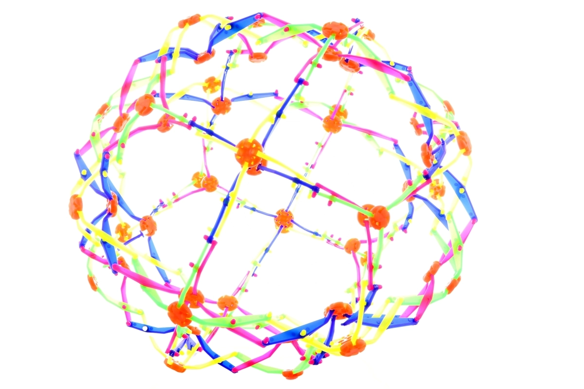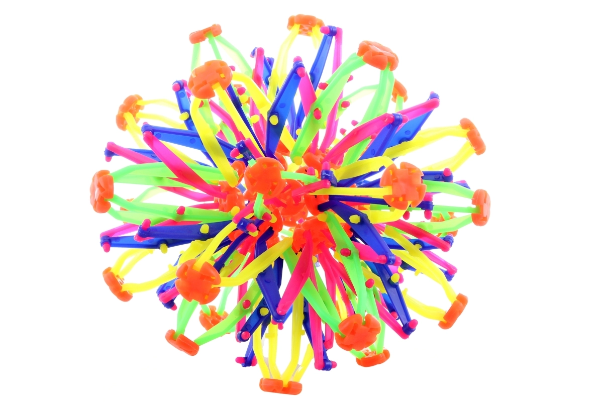 Тази цветна разтегателна топка от лека пластмаса впечатлява както деца, така и възрастни. Благодарение на добре обмислената конструкция лесно се разширява и свива, което я прави чудесна антистрес играчка и помощник за развитие на моториката и пространственото възприятие. Гладките краища на пръчките и плавните шарнири осигуряват безопасна и забавна манипулация.