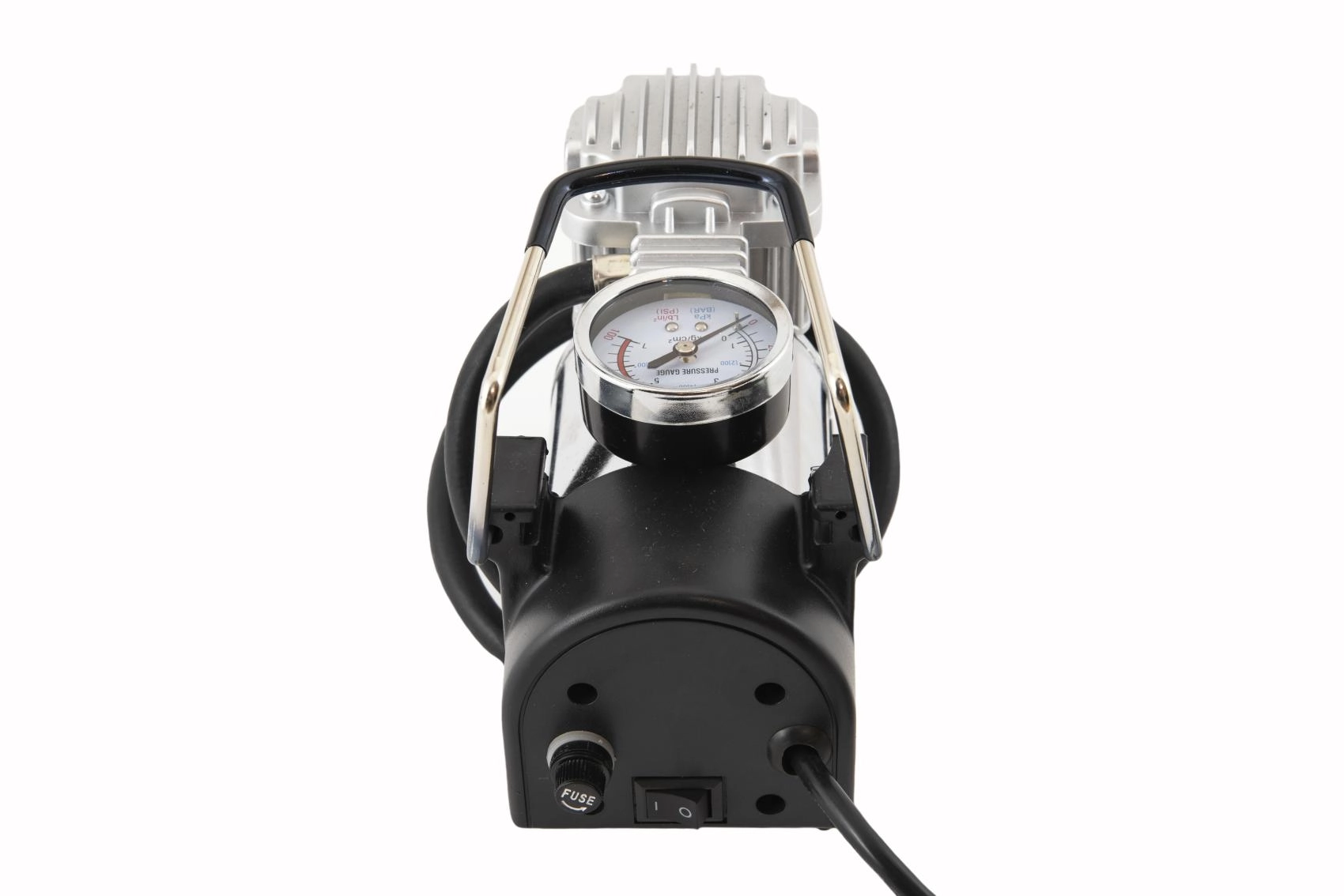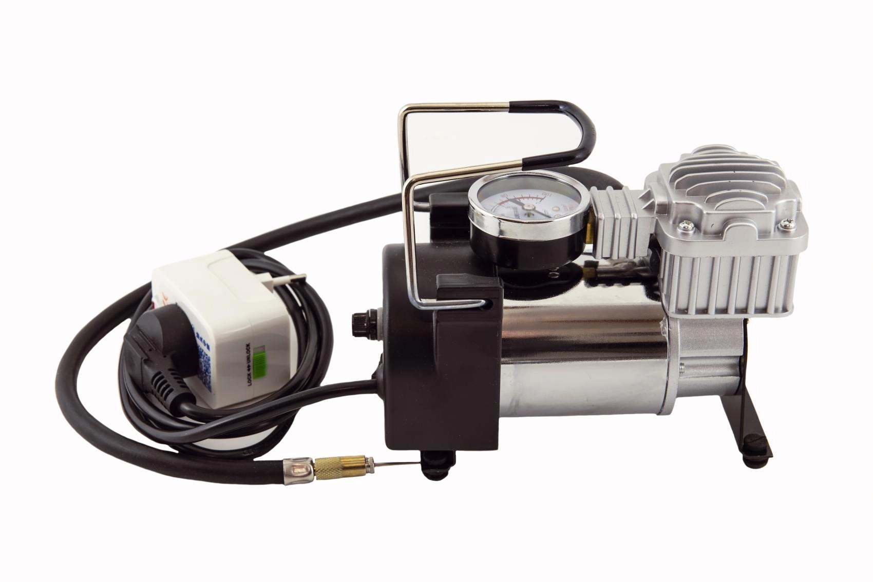 Компактен и мощен електрически компресор за бързо напомпване на гуми, топки и надуваеми изделия. Предлага максимално налягане 150 PSI, дебит 35 l/min и интегриран манометър за прецизен контрол на налягането. В комплекта са включени различни накрайници, включително игла, и мрежов AC адаптер 220–230 V за удобно използване у дома и в работилницата.