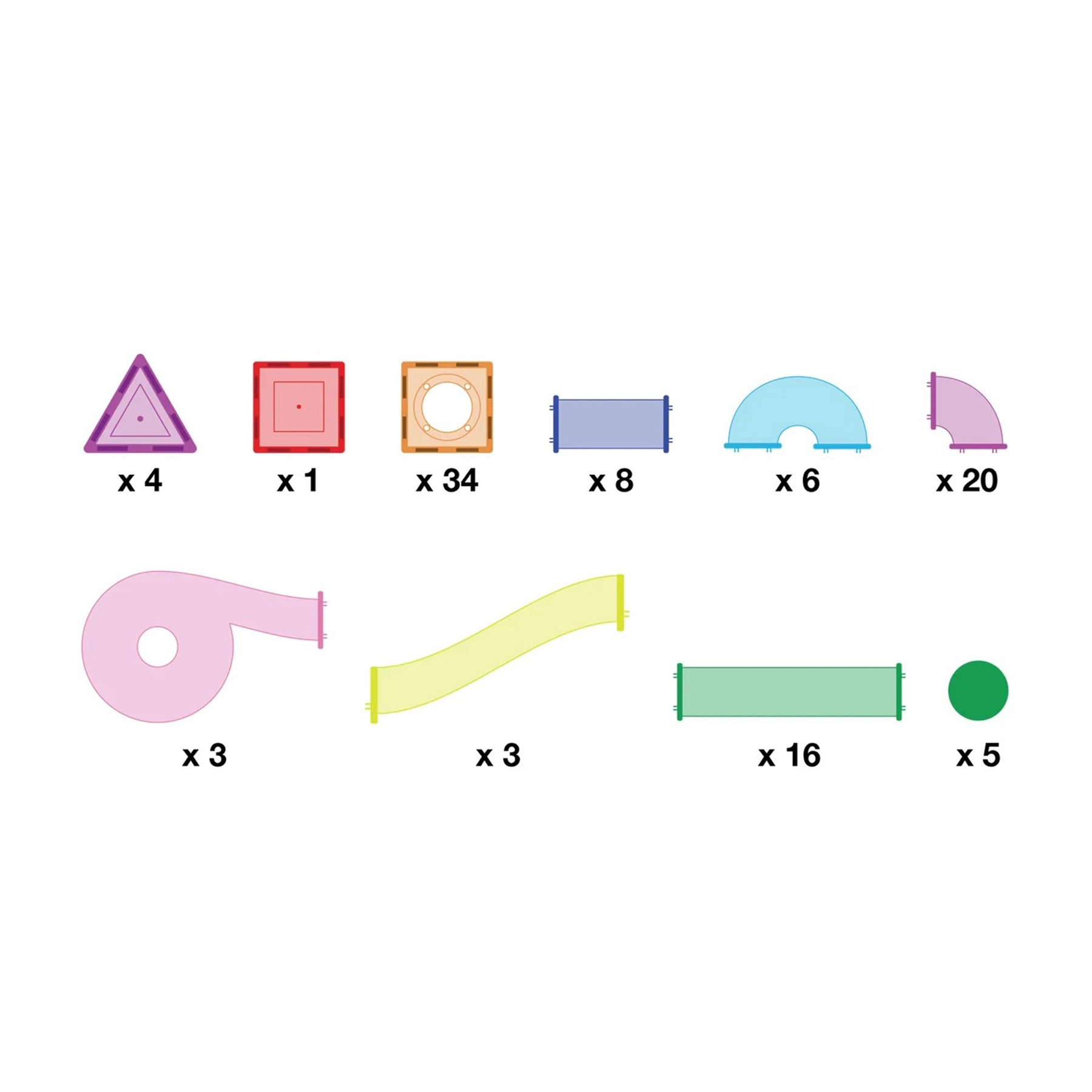 Този магнитен конструктор позволява на децата да проектират и строят собствени състезателни трасета за топчета, които преминават през завои и спускания. Благодарение на здравите магнитни връзки конструкциите са стабилни и лесни за преразглобяване и надграждане. Прозрачните цветни елементи придават атрактивен вид и подпомагат възприятието за форми и цветове.
