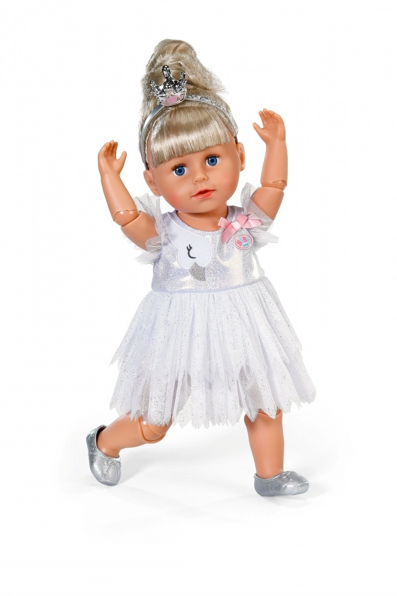 Подарете на своята кукла очарователна балетна промяна. Балетният тоалет BABY born съчетава нежна елегантност и премислени детайли: блестяща материя, бродерия на лебед и сладка панделка, които подкрепят всяко детско представление и фантазийната ролева игра.