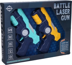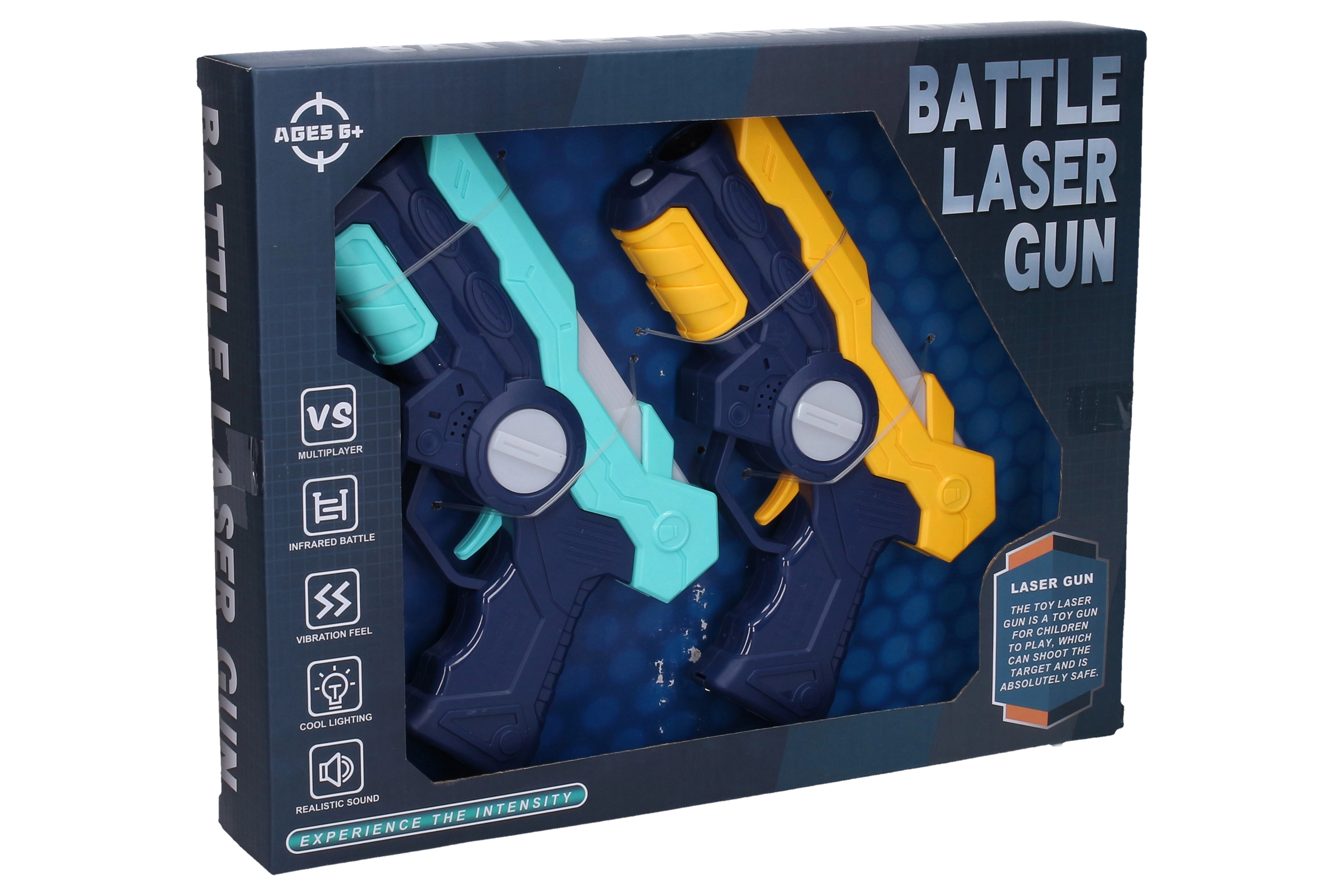 Комплектът от два лазерни пистолета е идеален за братя и сестри, приятели и семейни дуели. Компактният размер от 20 см ляга отлично в ръката, а изразителните светлинни и звукови ефекти придават интензивност на всяка игра. Ясното илюстрирано ръководство на задната страна на опаковката бързо ще ви преведе през настройката и управлението.