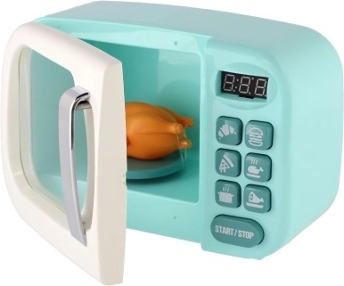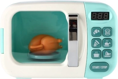 Представяме ви детска микровълнова фурна, която внася реалистичност в света на вашия малък готвач. Този интерактивен уред позволява на децата да включат фурната и да наблюдават как пилето вътре се върти на 360°. Светлината се включва автоматично при стартиране и изгасва, когато вратата се отвори. Звуковите ефекти обогатяват цялостното игрово изживяване.