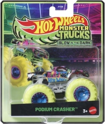 Загасете лампите и забавлението започва! Металните модели Hot Wheels Monster Trucks в мащаб 1:64 имат огромни колела, ярък дизайн и светят в тъмното за още по-интензивни удари, скокове и катастрофи. Страхотни за деца и колекционери; отделните модели се продават поотделно и могат да се различават по цвят и външен вид.