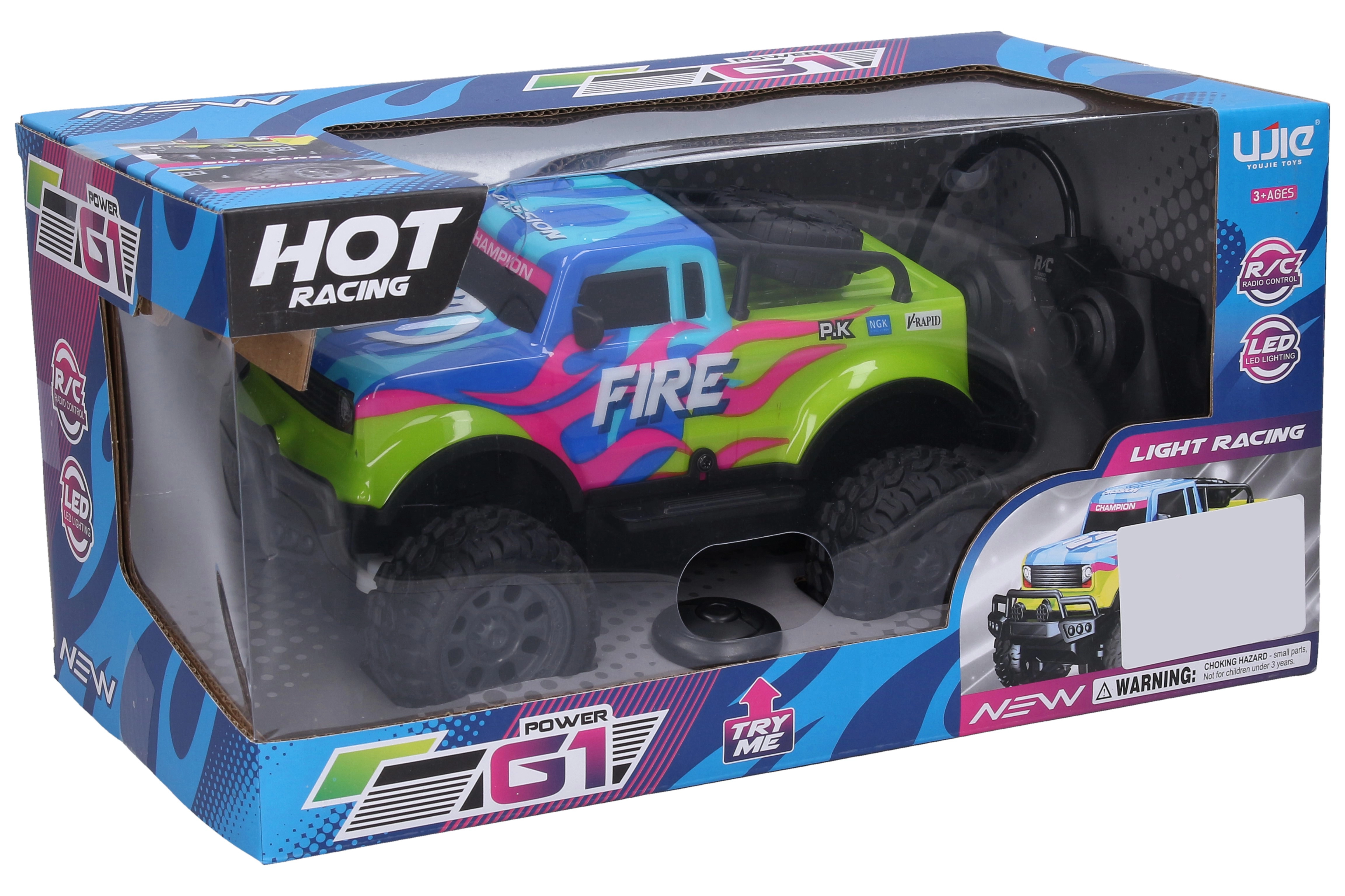 Насладете се на динамично шофиране със светещата RC кола Fire с дължина 23 см. Предлага светлинни ефекти, лесно управление на честота 27 MHz, скорост до 10 км/ч и обхват до 20 м – идеален избор за забавление у дома и навън.