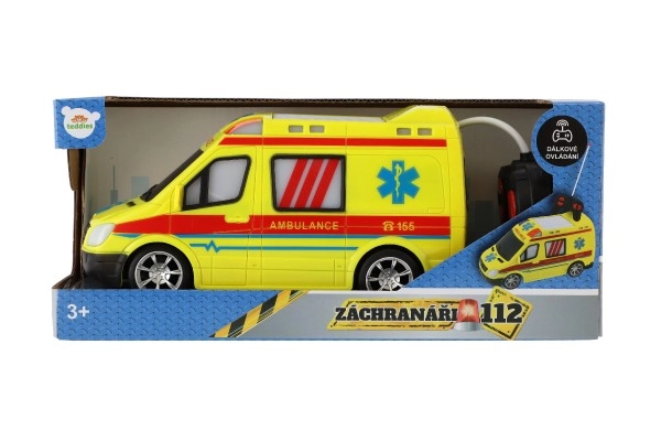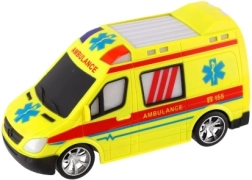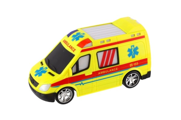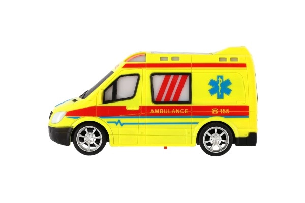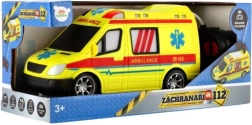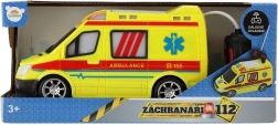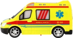 Ярко жълта линейка с детайли AMBULANCE и функционираща светлина подкрепя креативната игра на малките спасители.