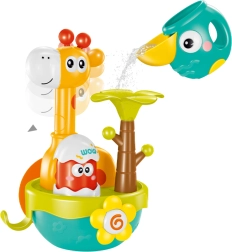 Жирафът за ваня от Woopie Baby носи радост от водата за децата и по-спокойно къпане за родителите. С фунийката във форма на патенце детето пълни резервоара, с което се задейства ефект на малък водопад и от червената черупка се показва главичка – прост, но завладяващ механизъм, който мотивира за игра и развива умения.