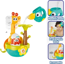 Превърнете ежедневното къпане в забавно приключение с очарователния жираф на Woopie Baby! Играчката се закрепва лесно за ваната с помощта на вендуза, работи на принципа на преливане на вода и след наливане активира воден ефект с изненада. В комплекта има фунийка във форма на патенце, практичен кукичка за съхранение и дизайн, който помага за преодоляване на страха от вода при деца от 18 месеца.