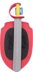 Забавен комплект за малки рицари: пенен меч и щит в червен цвят за безопасни дуели и творческа игра. Лек, мек и безопасен материал е идеален за деца, меч с дължина 57 см и щит с размери 27,5 × 41,5 см лягат удобно в ръката и стимулират детското въображение.