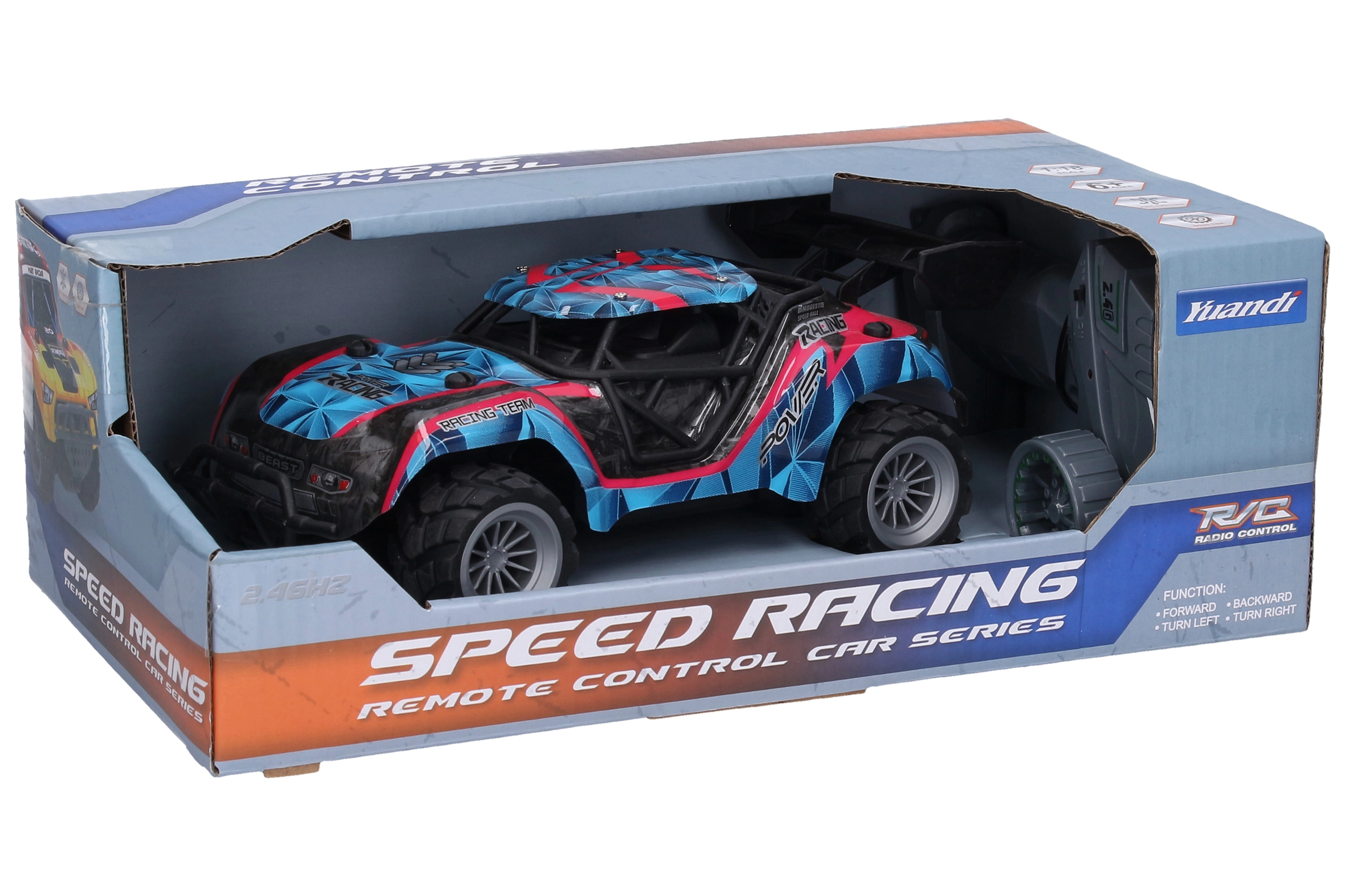 Това компактно RC бъги е отличен избор за начинаещи и малки състезатели. Стабилната връзка на 2,4 GHz позволява едновременно управление на няколко модела, докато пистолетният контролер осигурява интуитивно и прецизно управление. Практичният ON/OFF превключвател е разположен в долната част на бъгито и на контролера.