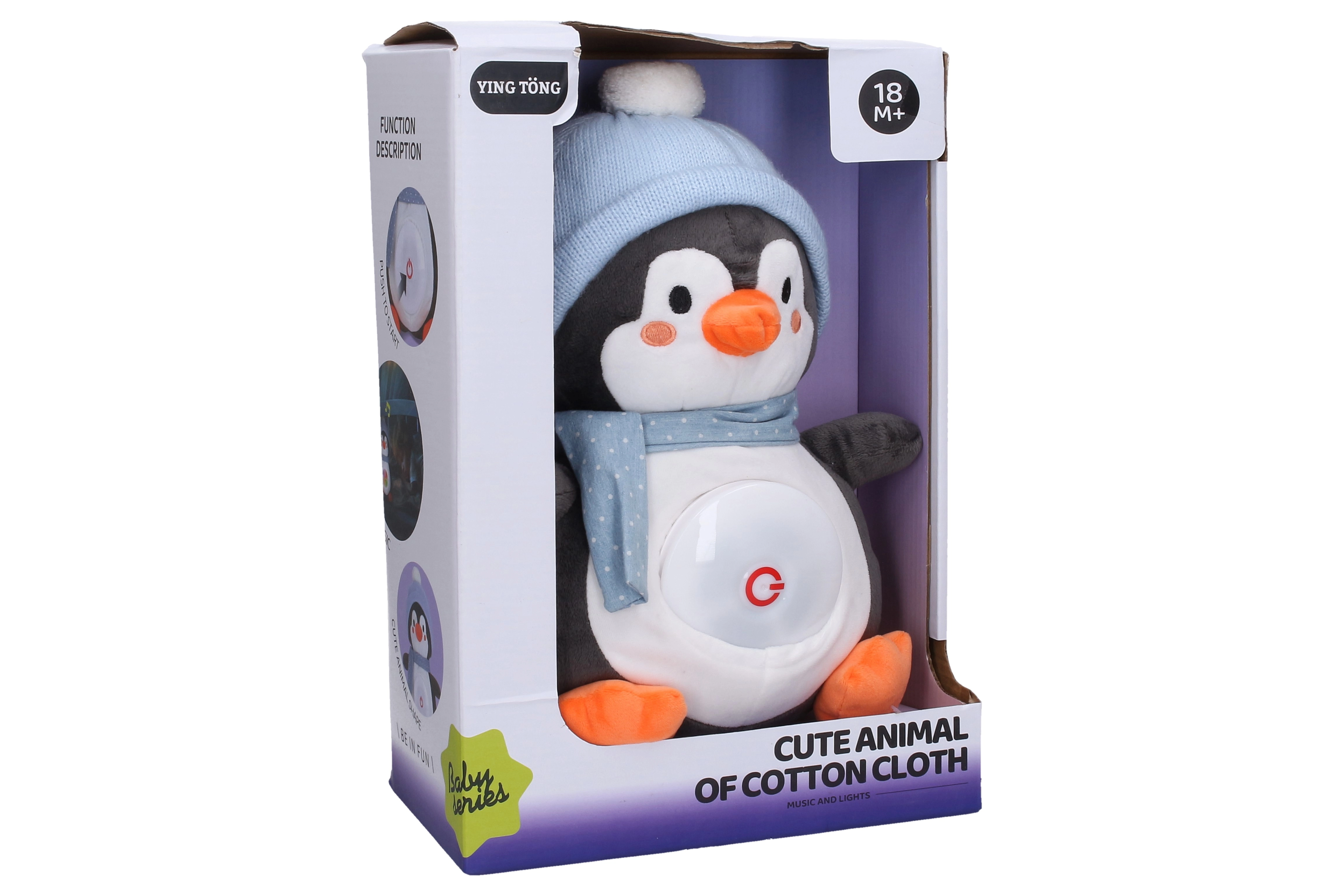 Този мек пингвин създава приятна атмосфера за заспиване. Коремчето на играчката по време на възпроизвеждане плавно сменя цветовете, което създава у децата чувство за сигурност и спокойствие. Благодарение на ясното управление на коремчето лесно пускате и превключвате някоя от 5-те мелодии.