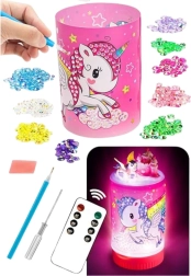В комплекта има креативен DIY сет с диамантени стикери, с които децата сами украсяват лампата. Персонализацията насърчава фантазията, търпението и сръчността, превръщайки лампата в уникална декорация и любим аксесоар за стаята.