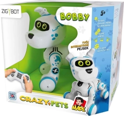 Сладък роботизиран любимец Zigybot Bobby носи на децата часове забавление и учене. Умее да реагира на допир, издава кучешки звуци, махa с опашка, върти се в кръг и умее да сяда. Може да се управлява с дистанционно управление или да се програмират движения, така че децата лесно да си създадат собствено послушно кученце – без бъркотия и грижи.