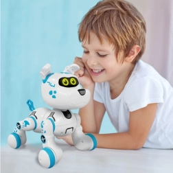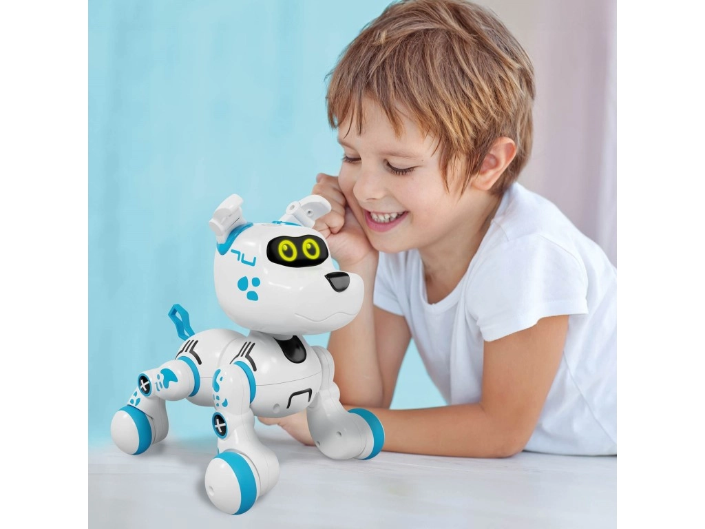 Роботизираното куче Zigybot Bobby е идеалната играчка за деца от 5 години, които обичат животните и технологиите. Благодарение на сензорите за допир на главата реагира на галене с радостно поведение и вярно махане на опашката. Реалистичните кучешки звуци и различните активни движения го правят чудесен спътник за креативни игри.