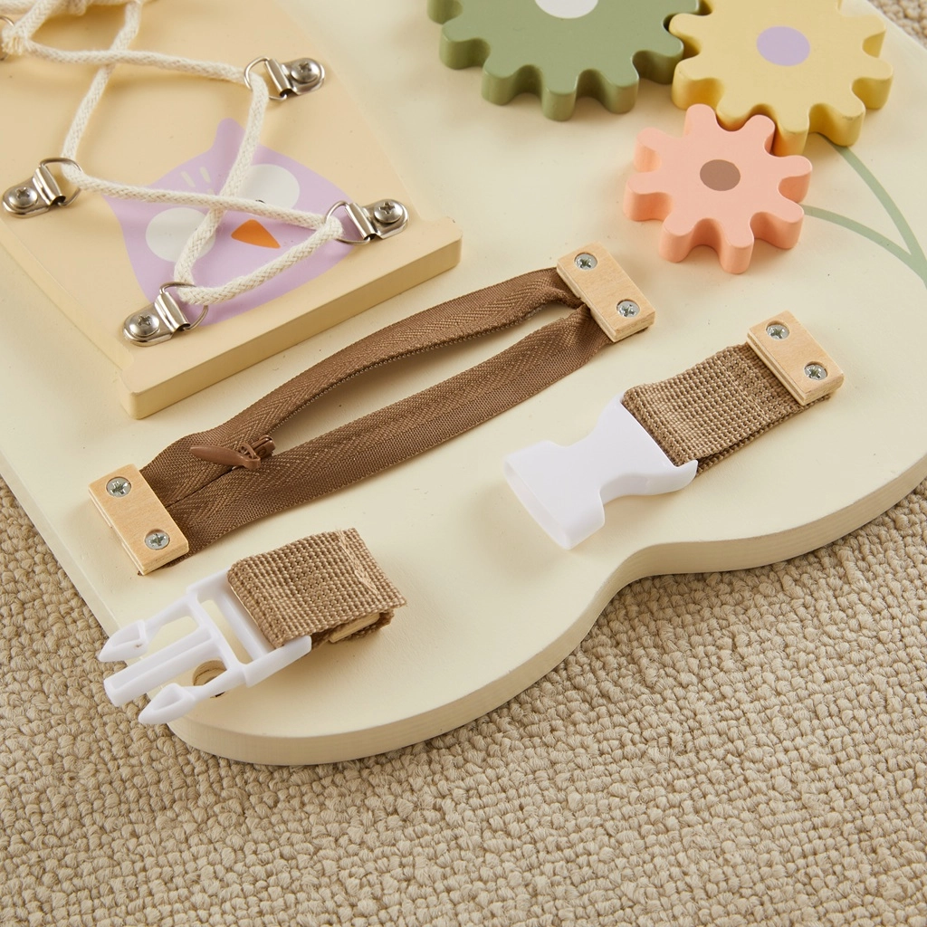 Голямата стенна моторична дъска във форма на сова от 2Kids Toys предлага на децата над 10 разнообразни активности в нежни пастелни цветове. Подпомага фината моторика, логическото мислене, сетивното възприятие и координацията ръка–око. Благодарение на качествената изработка от дърво, пластмаса и метал е безопасна, издръжлива и идеално пасва на детска стая или игрална площ.