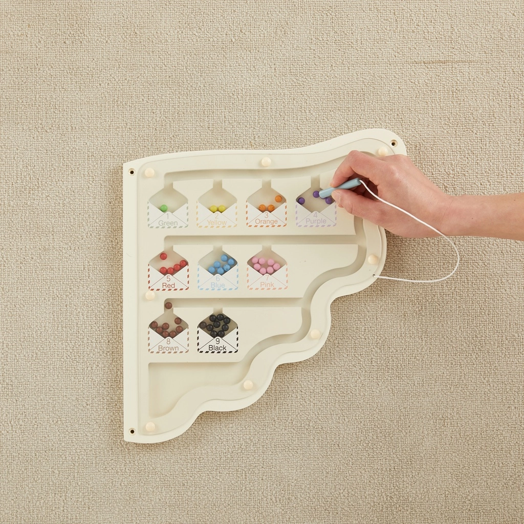 Дъската е проектирана за безопасно ежедневно взаимодействие – гладки ръбове, стабилно закрепване към стената и добре обмислено разположение на активностите. Децата упражняват търпение, концентрация и координация на движенията и естествено развиват умения, важни за предучилищна възраст.