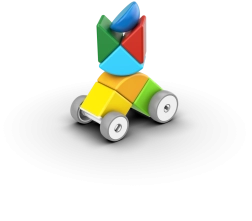 - Общо 13 части: магнитни елементи с различни форми и цветове + колела с шасита