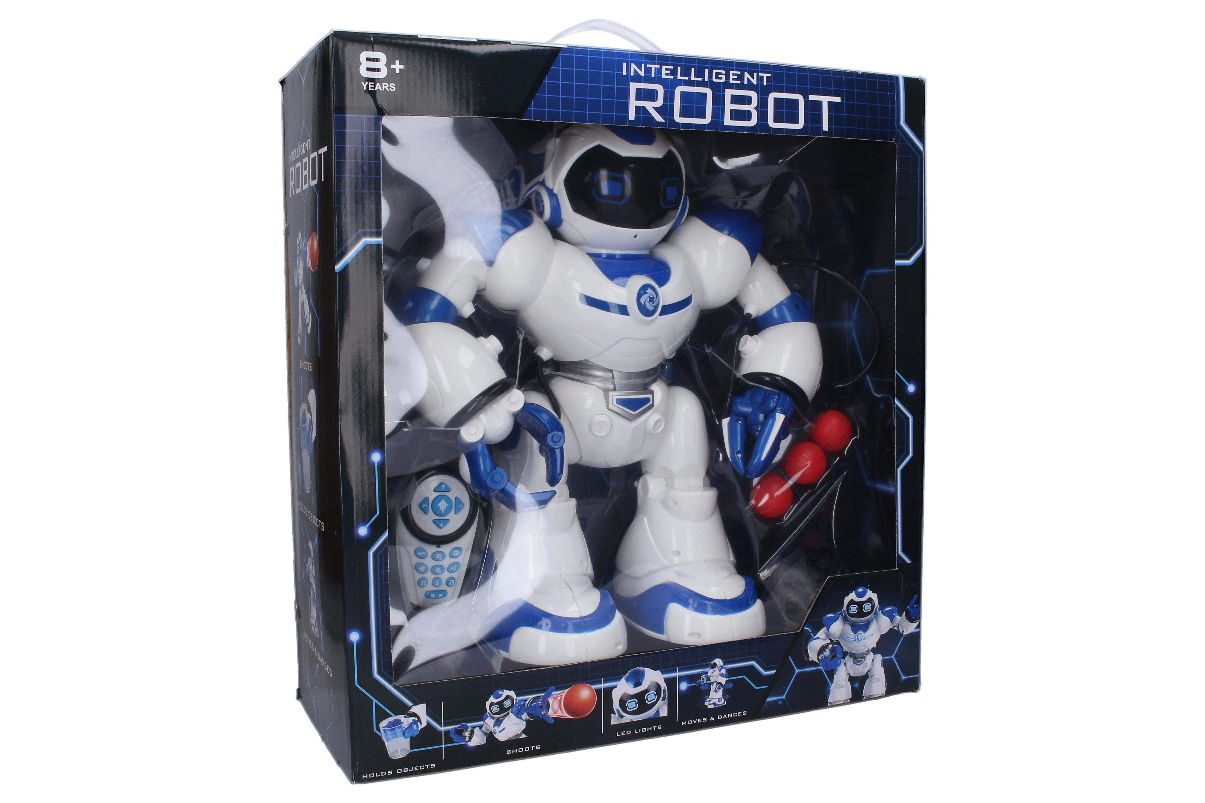 Забавен и интерактивен RC робот с височина 40 см, който стреля топчета, свети, свири и танцува. Предлага програмиране на движения, инфрачервено управление, настройка на силата на звука и богати светлинни и звукови ефекти. В комплекта има 3 топчета.